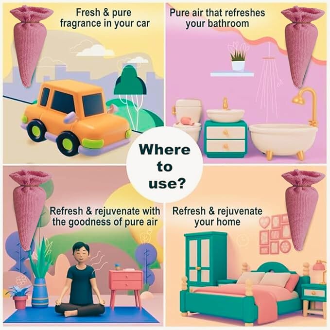 Ksma CamphAroma – Your Washroom Buddy, a organic camphor-based air freshener that eliminates odours and purifies the air. Unlike chemical sprays, this eco-friendly cone slowly releases pure camphor vapours, keeping your environment fresh, clean, and healthy. Ideal for bathrooms, wardrobes, cars, shoe racks, and small rooms, CamphAroma not only removes bad odours but also acts as a natural air purifier. Its reusable cloth pouch design makes it elegant and sustainable. Experience the calming and refreshing effect of nature with every breath you take.