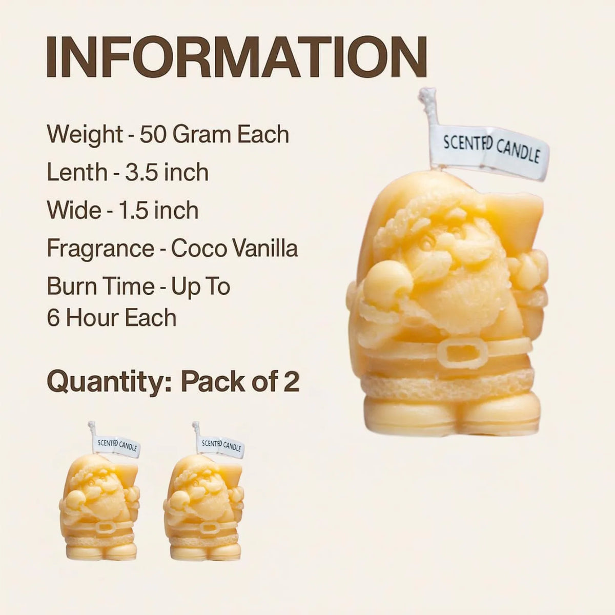 Set of 2 Small Santa Claus Decorative Candle (Coco Vanilla Scented) for Christmas | Festive Scented Wax Candle for Home Décor, Gifts & Xmas Decoration | Santa Candle