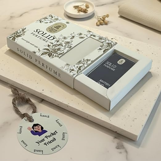 Ksma British Oud Solid Perfume, a handcrafted luxury perfume made from natural wax and infused with the timeless aroma of pure Oud. Inspired by classic British sophistication, this solid perfume blends deep woody notes with warm amber tones — giving you a rich, captivating scent that stays with you all day. Its compact design makes it perfect for on-the-go freshness, while the alcohol-free formula ensures it’s gentle on your skin. Whether you’re heading to work or an evening event, this perfume defines refined luxury in every touch.
